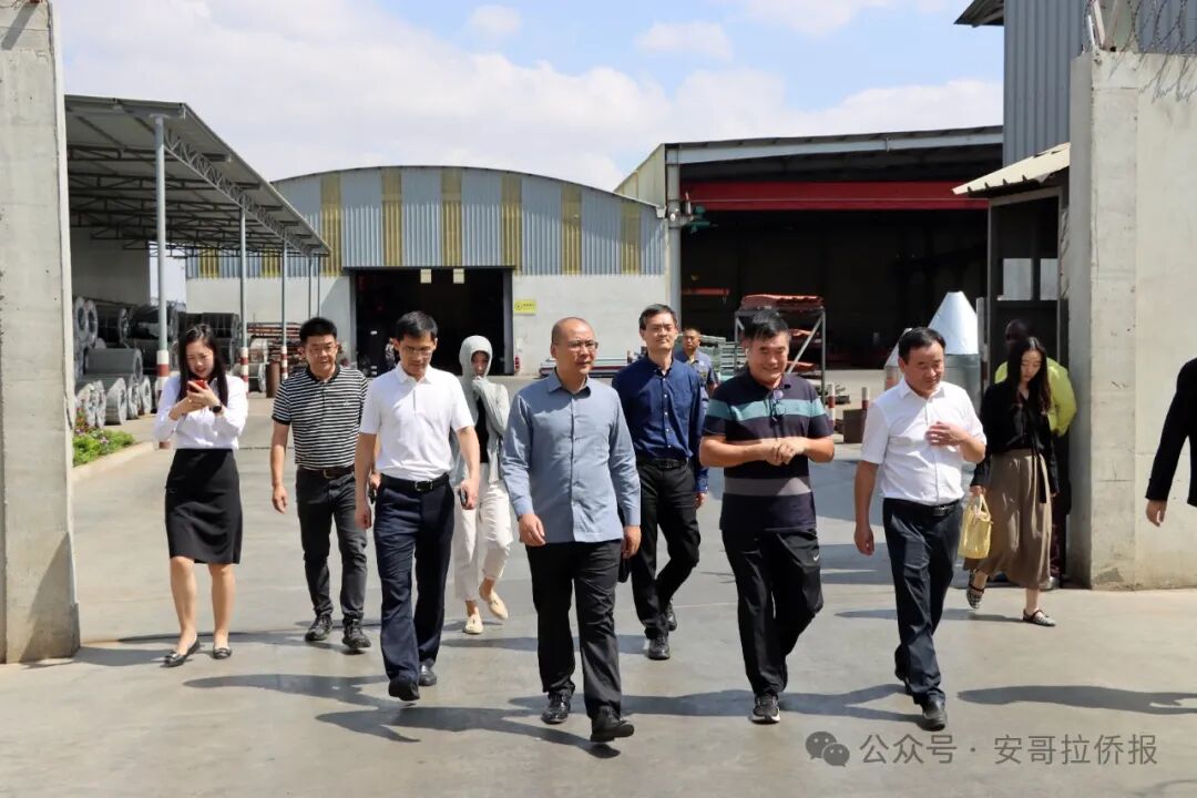 2024年6月1日,驻安哥拉大使张斌走访苏杰国际二号生产基地和1号总部营地,看望慰问企业员工,实地考察了解企业经营和发展情况,并同苏杰国际董事长王林元等进行座谈交流。驻安使馆经商参赞陆玉忠、领侨参赞戴锋宁等参加了上述活动。
