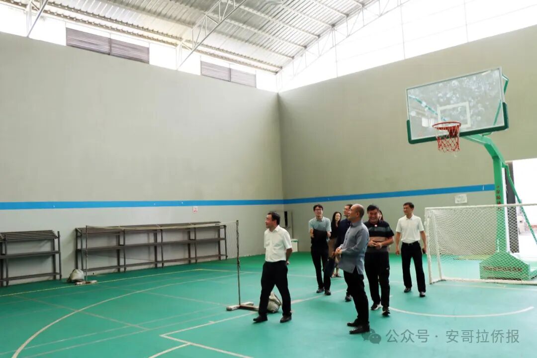 参观曾作为中安建交40周年“友谊杯”篮球赛主赛场的苏杰国际室内篮球场,张斌大使说这是自己看到的安哥拉华企最好的室内篮球场。